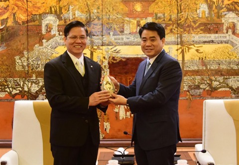 | Le président du Comité populaire de Hanoï, Nguyên Duc Chung (droite), et le pasteur Nguyên Huu Mac, responsable de l'Église évangélique du Vietnam (Nord), le 18 janvier à Hanoï. |