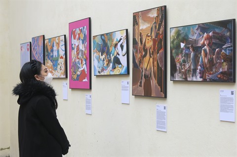 | L’exposition des œuvres du concours de dessin "Hanoï est..." figure dans le cadre de la Semaine de la créativité 2021. |