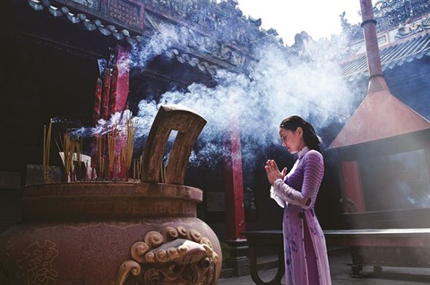 | Les Vietnamiens mettent un point d’honneur à visiter les lieux de culte vêtus décemment. |