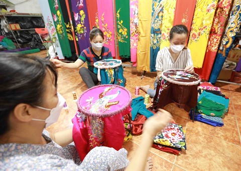 | Le métier de broderie au village de Cô Chât, district de Thuong Tin, Hanoï. |