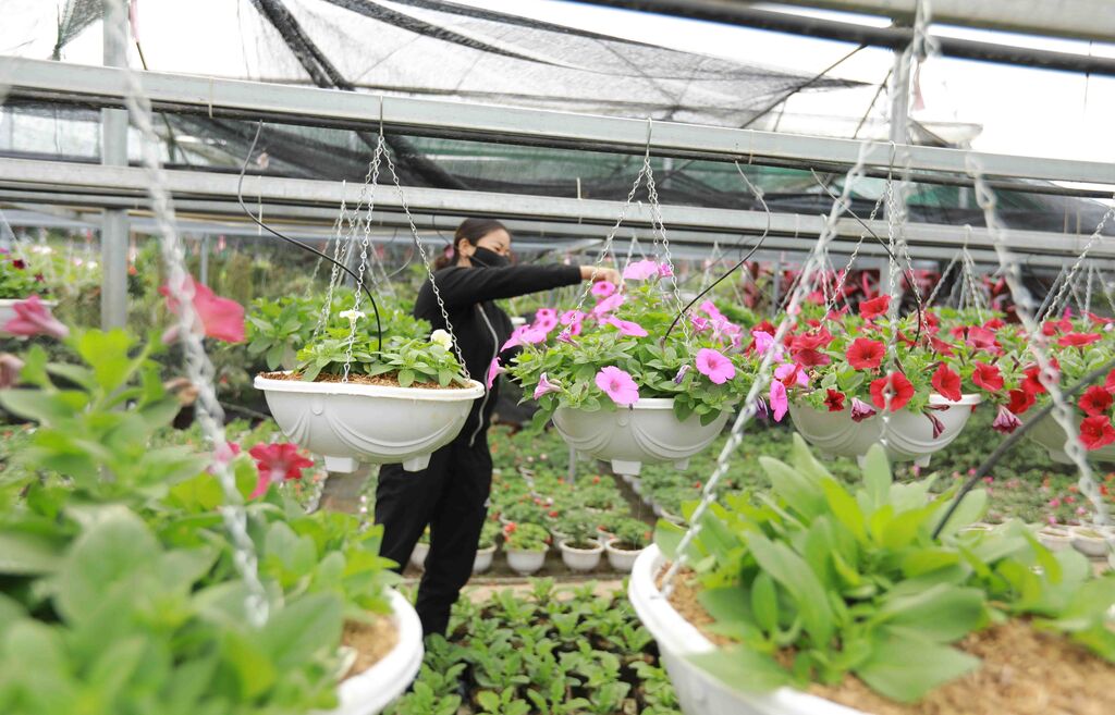 | Les agriculteurs de Tich Giang appliquent de nouvelles technologies dans la plantation des fleurs. |