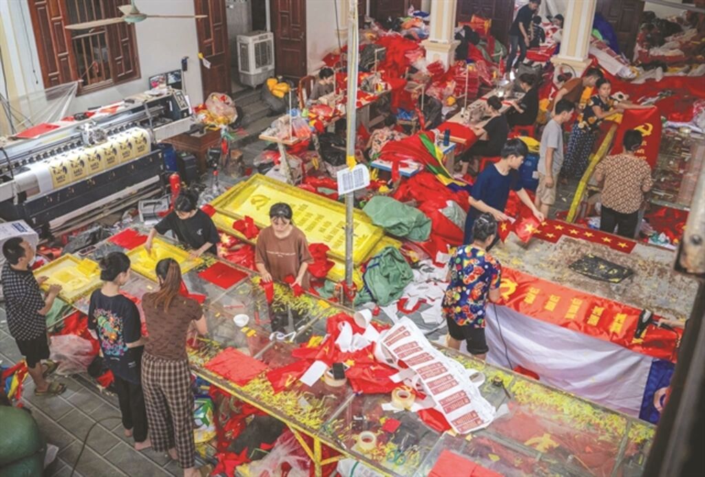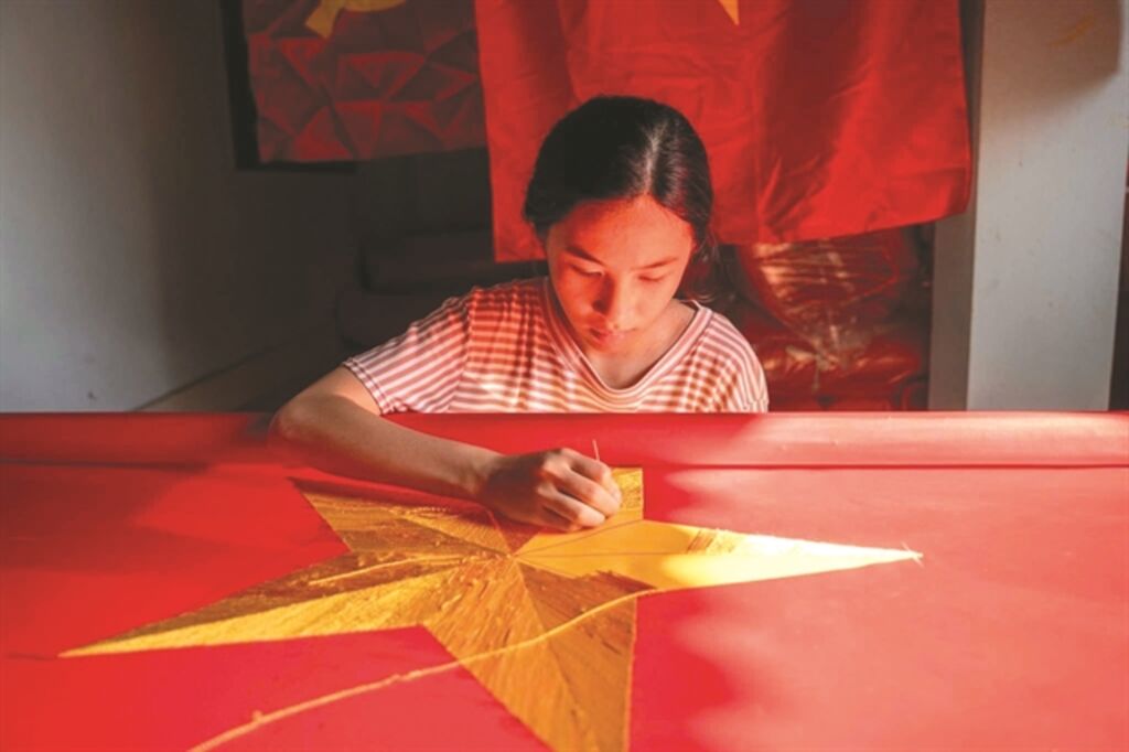 Les artisans qualifiés ont fabriqué des millions de ces drapeaux, notamment ceux qui flottaient sur la place Ba Dinh le 2 septembre 1945, lors de la Déclaration d’indépendance par le Président Hô Chi Minh.