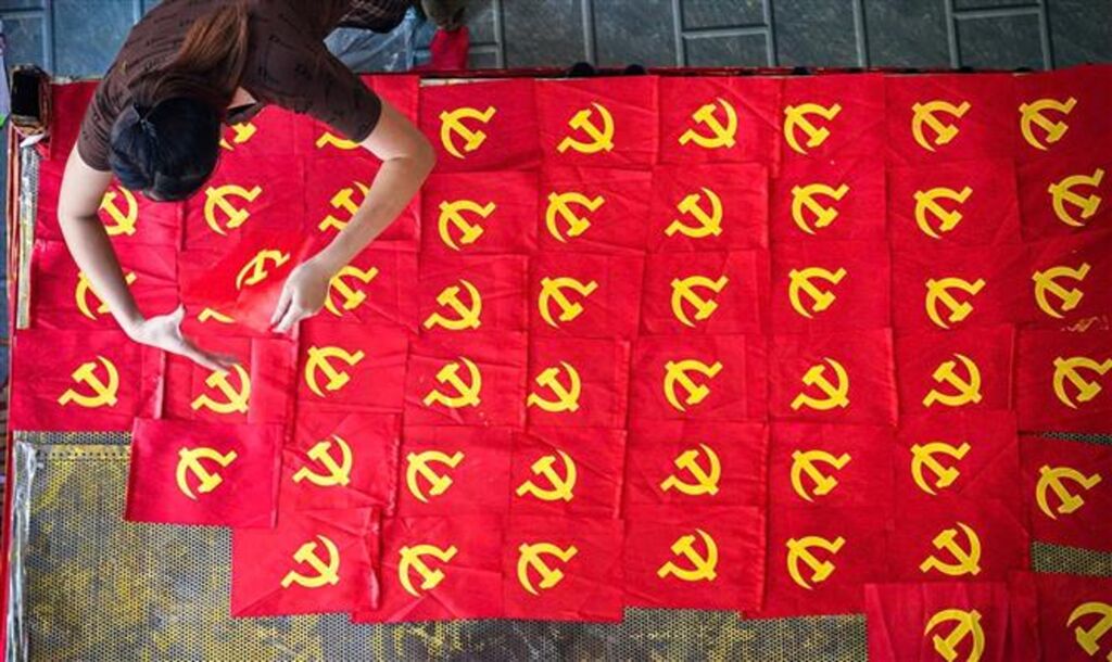 | Les drapeaux du Parti communiste, ainsi que les drapeaux nationaux, accompagnés de bannières rouges et d’affiches, illuminent la nouvelle année scolaire, la Fête nationale et tous les événements majeurs. |