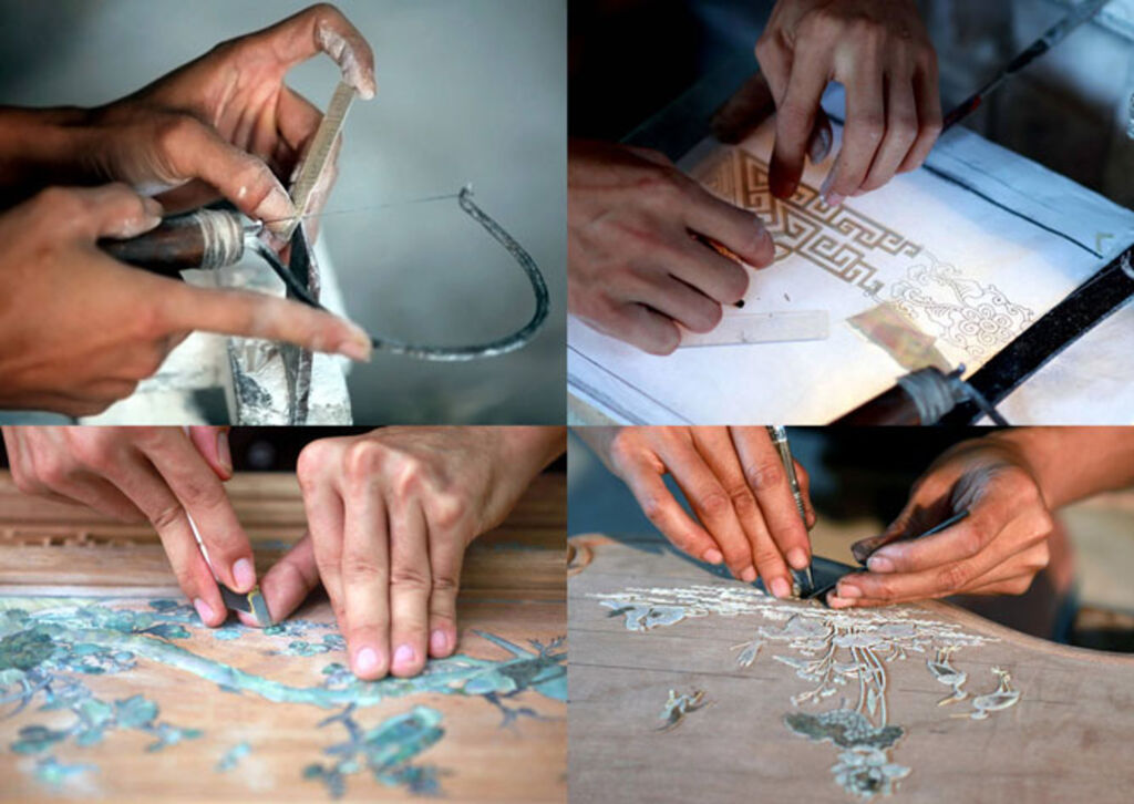 Cet artisanat est apparu sous la dynastie des Ly (1010-1225). L’ancêtre du métier est Truong Công Thành, un adjoint du général Ly Thuong Kiêt selon les recherches historiques. La légende raconte que lors de déplacements à la suite de sa victoire contre l’ennemi, il découvrit la beauté vierge des coquilles d’huitres et d’escargots en bord de mer. Il eût alors l’idée de créer des sculptures avec celles-ci.