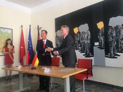 | Signature de l’accord de coopération entre l’ambassade d’Allemagne au Vietnam et la brasserie Dai Viêt (relevant du groupe Huong Sen), le 14 novembre à Hanoi. |