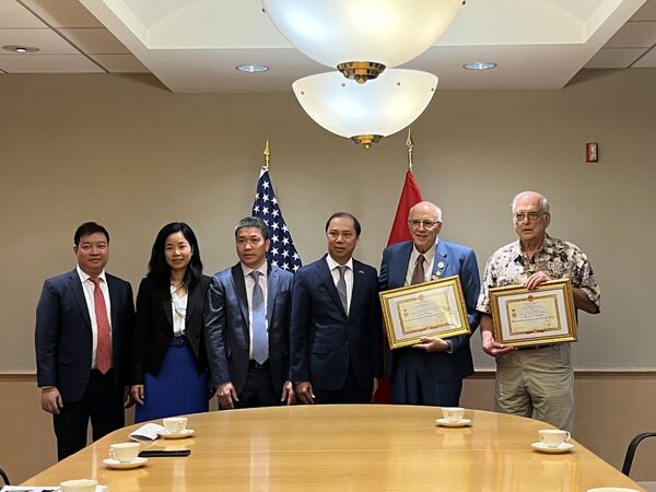 >> Remise de l'Insigne "Pour la paix et l'amitié entre les nations" à trois amis américains