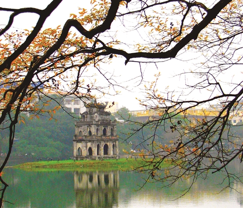 | Le lac de l'épée restituée (Hoàn Kiêm), au cœur de Hanoi. |