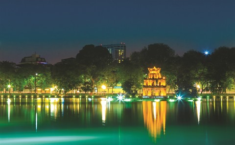 | Le soir au lac Hoàn Kiêm, au cœur de Hanoï. |