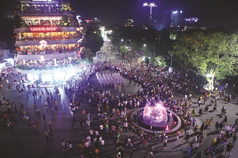 | Espace piétonnier autour du lac Hoàn Kiêm, avant l’apparition du COVID-19. |