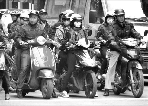 | Les Hanoïennes sont nombreuses à utiliser des masques en tissus pour se protéger de la pollution. |
