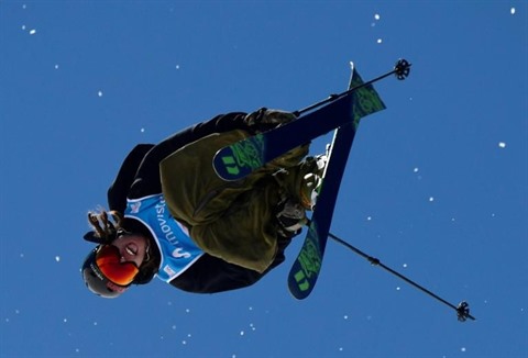 | Le Suédois Henrik Harlaut lors de la finale du slopestyle aux Mondiaux de freestyle et snowboard, le 19 mars 2017 en Sierra Nevada. |