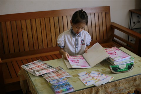 Les élèves de Doàn Thi Diêm ont suggéré de remplacer le plastique par d’autres matières respectueuses de l’environnement, papier journal par exemple, ou de laisser cahiers et livres sans couverture de protection.
