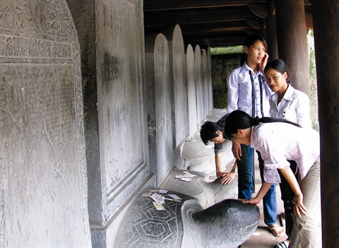 Le Temple de la Littérature, première université nationale créée en 1076 sous la dynastie des Ly (1010-1225), est lui aussi victime de certains comportements. En effet, lors de la période des concours scolaires et universitaires, les candidats viennent toucher les têtes des tortues pour s’attirer la chance. Si ce geste paraît anodin et n’est surtout pas à blâmer d’un point de vue culturel, il est responsable de la détérioration - par polissage - des statues en question.