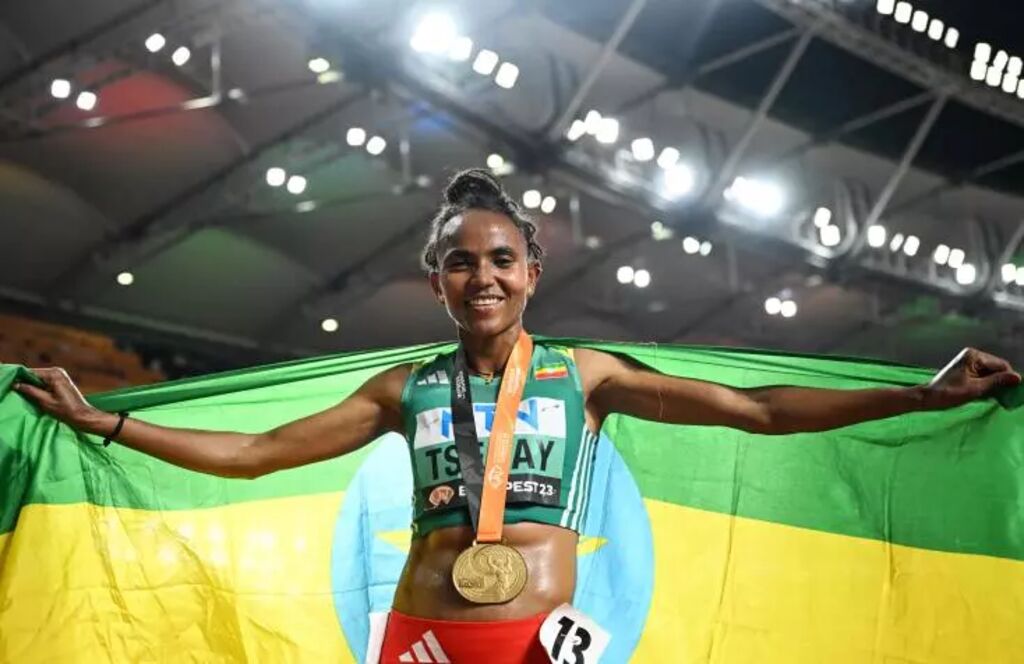| L'Éthiopienne Gudaf Tsegay championne du monde du 10.000 m le 19 août à Budapest. |