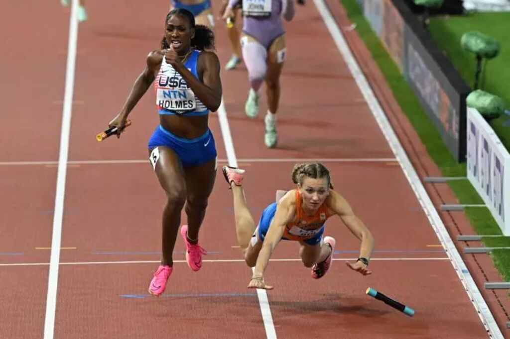 Quelques minutes après elle, Femke Bol, à la bagarre avec l'Américaine Alexis Holmes, a violemment chuté la tête la première à moins de 10 m de l'arrivée du 4x400 m mixte en lâchant le témoin, de quoi disqualifier son équipe. Bol, immense favorite du 400 m haies qui débute lundi, paraissait inconsolable, malgré le soutien de ses coéquipiers.