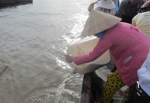 | Les habitants participent au lâcher des alevins pour reconstituer les ressources halieutiques. |