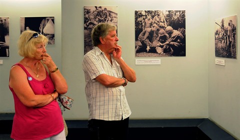 | Des visiteurs étrangers en visite du Musée des vestiges de guerre de Hô Chi Minh-Ville. |