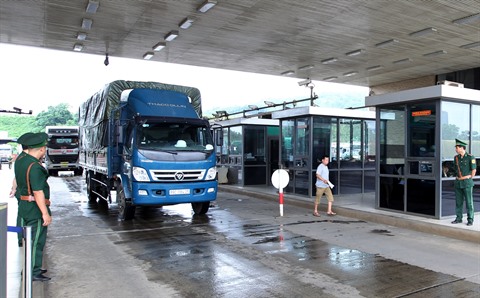 | Un camion de marchandises à la porte frontalière internationale de Lào Cai dans la province septentrionale éponyme. |