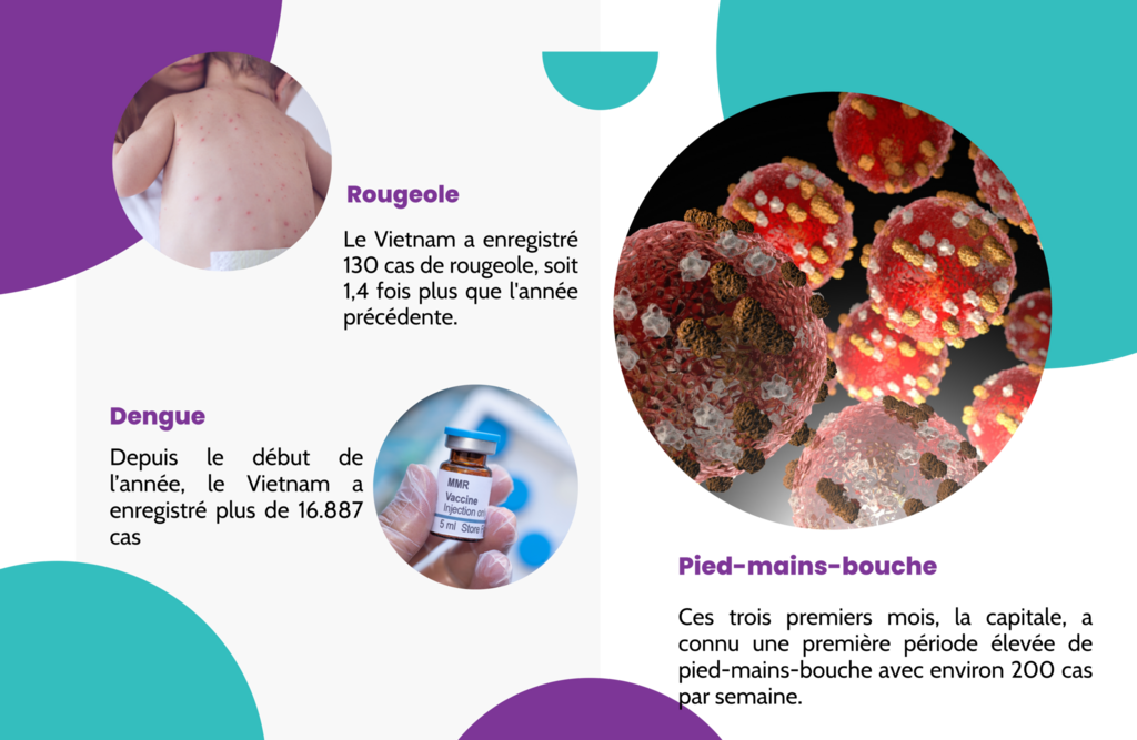 À Hô Chi Minh-Ville, le Centre de contrôle des maladies (CDC) a rapporté 287 cas de pieds-mains-bouche au début du mois d'avril (+87% par rapport au mois précédent), et les cas de dengue ont également augmenté.