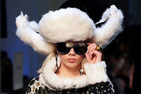 Le pull de Noël, c'est chic : Jean Paul Gaultier propose une escapade sur les sommets enneigés avec bonnets à pompon, doudounes à plumes et après-ski en fourrure.