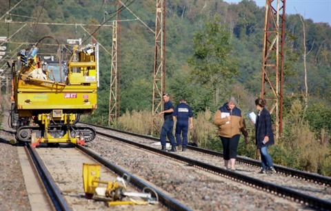 | Des gendarmes inspectent la voie ferrée à Péré dans les Hautes-Pyrénées, le 10 octobre. |