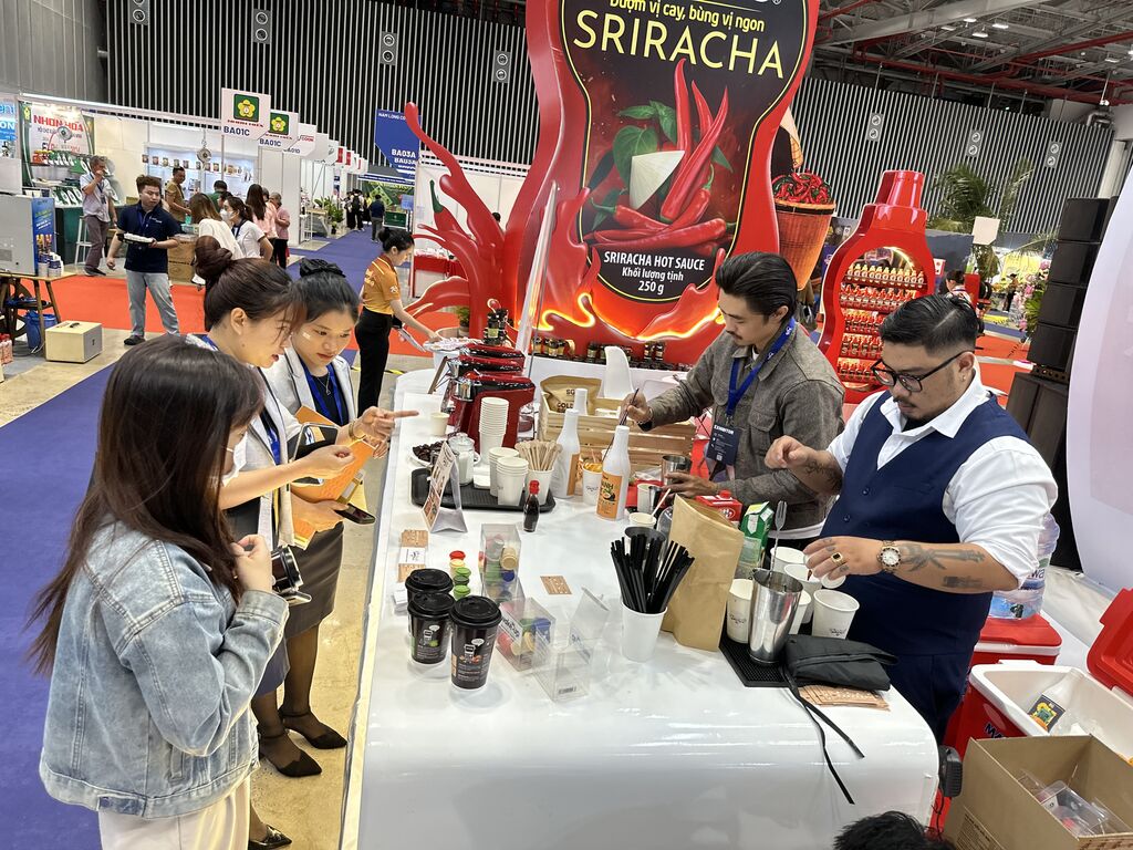 | Des visiteurs devant le stand Chin-Su à l'exposition "HCM City Export 2024". |