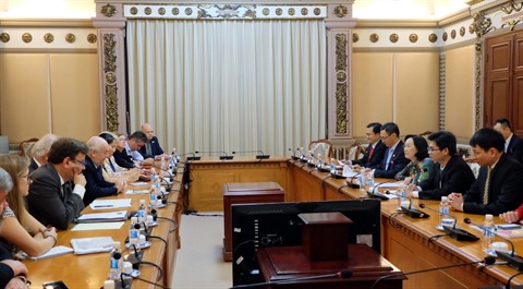 | Séance de travail entre des représentants du Conseil populaire de Hô Chi Minh-Ville et du groupe parlementaire multipartite du Royaume-Uni. |