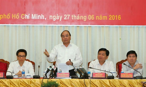 | Le Premier ministre Nguyên Xuân Phuc (debout) travaille avec les autorités de Hô Chi Minh-Ville, le 27 juin. |