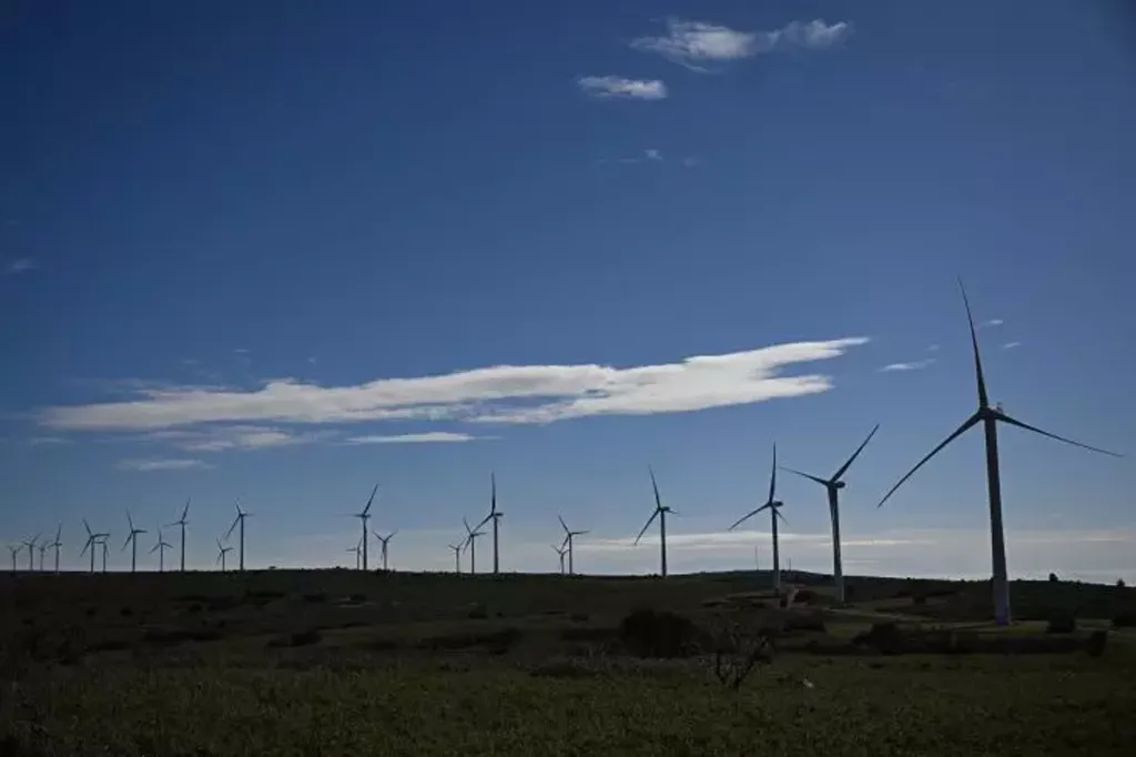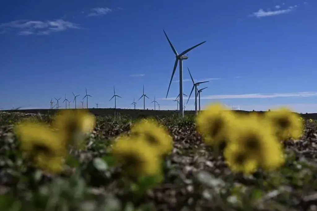 | Un parc éolien à Aumelas, à l'ouest de Montpellier, le 12 mars dans l'Hérault. |