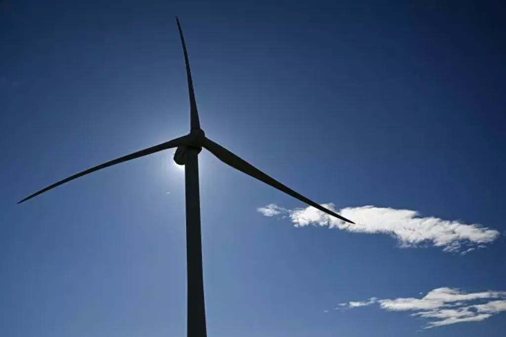 | Une éolienne du parc d'Aumelas, à l'ouest de Montpellier, le 12 mars dans l'Hérault. |