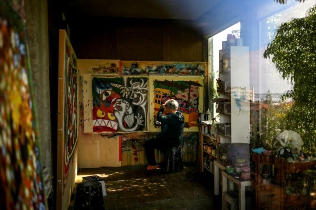 | L'artiste français Hervé Di Rosa travaille dans son studio à Lisbonne, le 16 mars. |