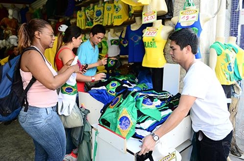 Le marché de Brás, dans le quartier commerçant traditionnel de São Paulo, concentre beaucoup de magasins de vêtements. Avec le Mondial, les T-shirts se vendent comme des petits pains. Ceux du Brésil, bien sûr, sont les plus vendus. Les prix varient entre 25 et 40 réals (250.000-400.000 dôngs).