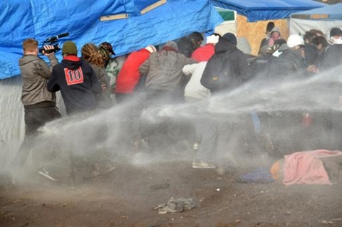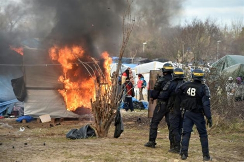 Après une matinée plutôt calme, la situation s'est tendue en début d'après-midi: à la suite d'un départ de feu de cabanes, des projectiles ont été lancés sur les CRS par des migrants et des militants de No border (150 personnes selon la préfecture). Les CRS ont riposté en faisant usage de gaz lacrymogène, a constaté une vidéaste de l'AFP.