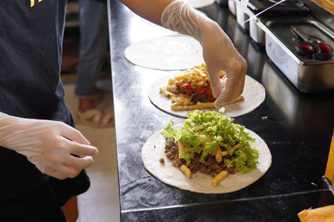 Par ailleurs, les fromages (français et vietnamiens), les omelettes, les frites, et les oignons sont toujours à la carte. Les staffs plient et mettent ces tortillas dans les presses à panini pour les faire chauffer.