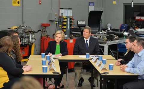 Mme Clinton y a participé à une table ronde au Kirkwood Community college avec des étudiants et des personnels encadrants.