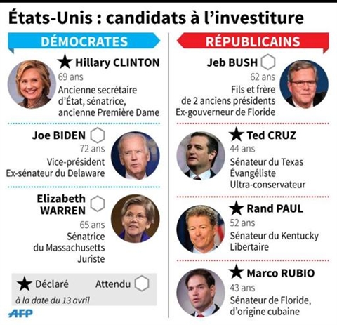 | États-Unis : les candidats à l'investiture, déclarés ou attendus, démocrates et républicains. |