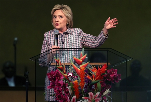 | Hillary Clinton, le 5 juin en Californie, aux États-Unis. |