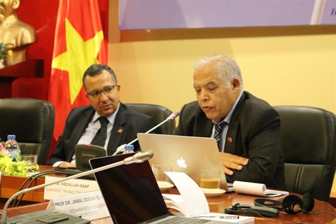 | Le Professeur Abdallah Saaf (droite) a présenté certaines facettes intéressantes de son ouvrage aux lecteurs vietnamiens. |