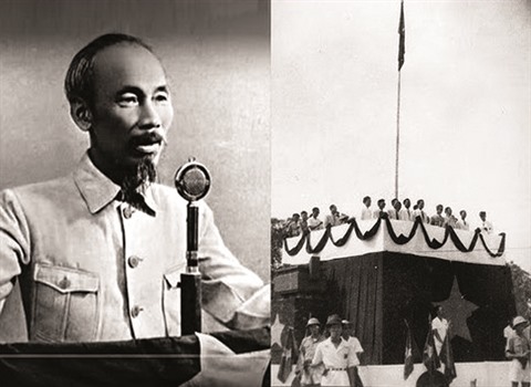 | Le Président Hô Chi Minh proclame la Déclaration d’Indépendance, donnant naissance à la République démocratique du Vietnam, le 2 septembre 1945 sur la place Ba Dinh, à Hanoï. |