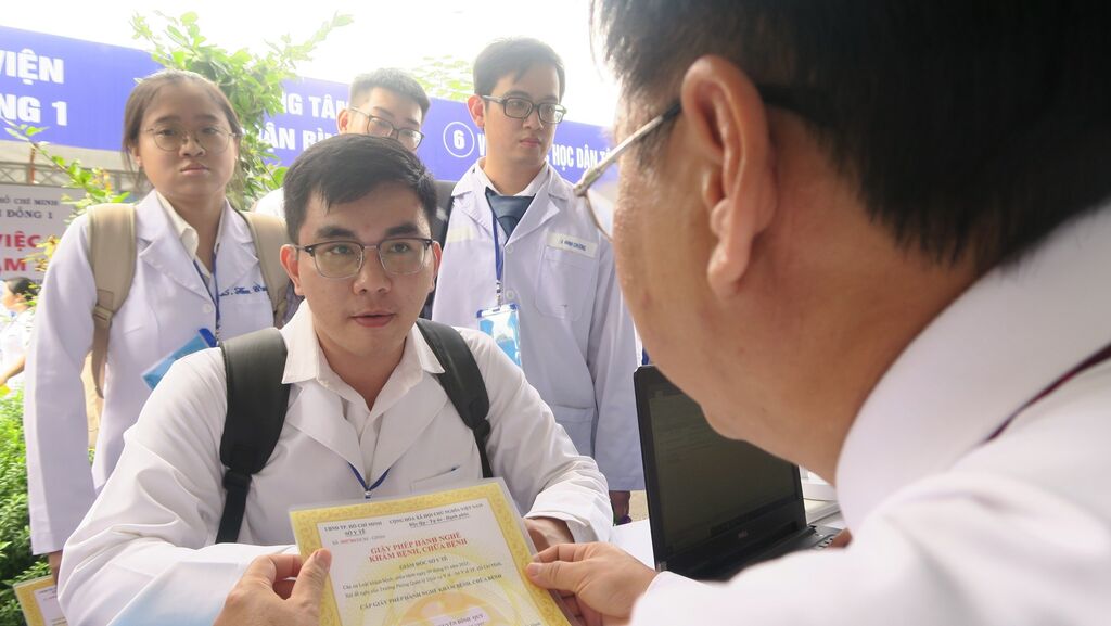 Après avoir étudié les besoins de recrutement des hôpitaux, le docteur Thai Châu a décidé de postuler à la polyclinique de Hoc Môn. Après la série d'entretiens, il a reçu une décision positive du conseil d'administration de l'hôpital. Auparavant, Thai Châu et 115 jeunes médecins venaient de terminer le programme de pratique médicale à l'hôpital.