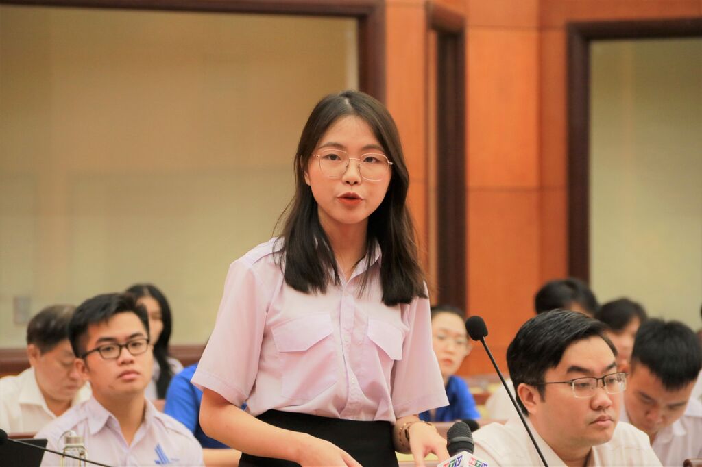 | Mai Hai Yên partage ses idées sur les contributions des jeunes au développement de ville. |