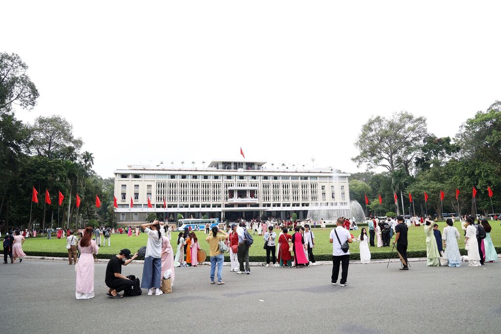 | Des visiteurs au Palais de la Réunification, une destination célèbre de Hô Chi Minh-Ville, le premier jour du Nouvel An 2025. |