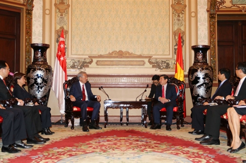 | Le président du Comité populaire de Hô Chi Minh-Ville, Nguyên Thành Phong (droite), a reçu le 13 septembre le vice-Premier ministre singapourien Teo Chee Hean. |