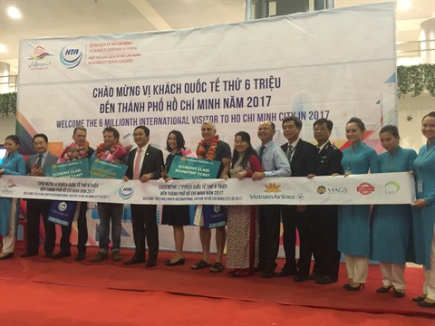 | La cérémonie d'accueil du 6.000.000e touriste se rendant à Hô Chi Minh-Ville en 2017. |