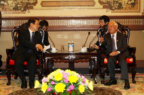 | Le président du Comité populaire de Hô Chi Minh-Ville, Lê Hoàng Quân (droite), a reçu le 21 avril le ministre chinois de la Culture, Tai Yu. |
