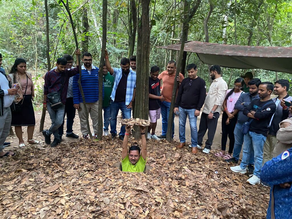 | Touristes indiens découvrant les tunnels de Cu Chi. |