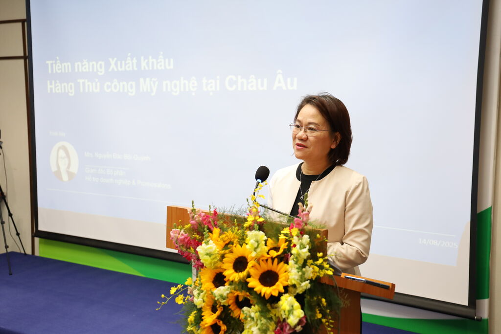 | Nguyên Dac Bôi Quynh, directrice de la promotion commerciale des entreprises vietnamiennes à la CCIFV, partage des informations sur le marché européen. |