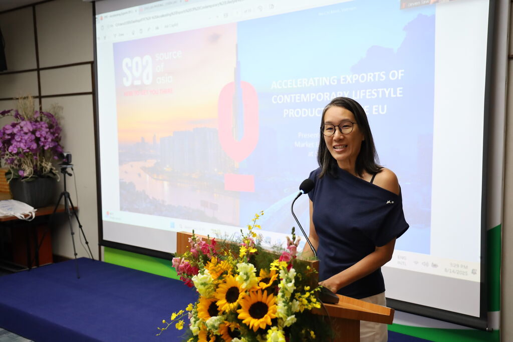 | La directrice du développement des marchés chez Source of Asia, Trà Lê, s'exprime lors de l'évènement. |