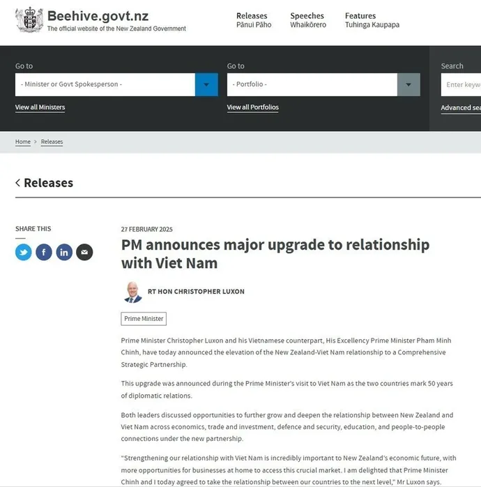 >> La presse néo-zélandaise souligne la visite du PM Christopher Luxon au Vietnam
