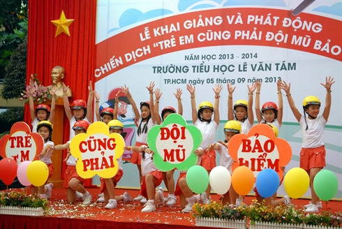 | Cérémonie de lancement de la troisième étape de la campagne «Les enfants aussi doivent porter le casque», le 5 septembre à Hô Chi Minh-Ville. |